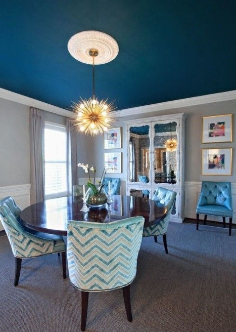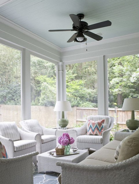 客厅的天花版,就好比家中的天,而地板则是地。如果天花板的色调过重,就容易让家人有种“头重脚轻”的压顶之感。另外,天花板颜色过深则不符合“天轻地重”的原则。所以在设计天花板的时候,就该选择色调较轻的颜色,例如蓝天的浅蓝、白云的白色等。而地板倒是可以用相对较重的色调。