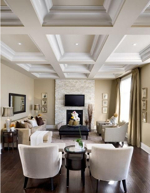 这里针对天花板过矮的情形来处理,因为会给客厅带来横梁压顶的压迫感。如果是天花板的高度过矮,则可以在装修设计的时候,选用中间高四边低的造型。这样就能让客厅的高度看起来舒服,而且中间高两边矮看起来就像“天池”一样,风水学中认为此为聚水聚财的格局。所以不妨考虑“天池”的天花板造型,对家宅也大有裨益。合适的话,还能适当地选择水晶吊灯以作画龙点睛之用。